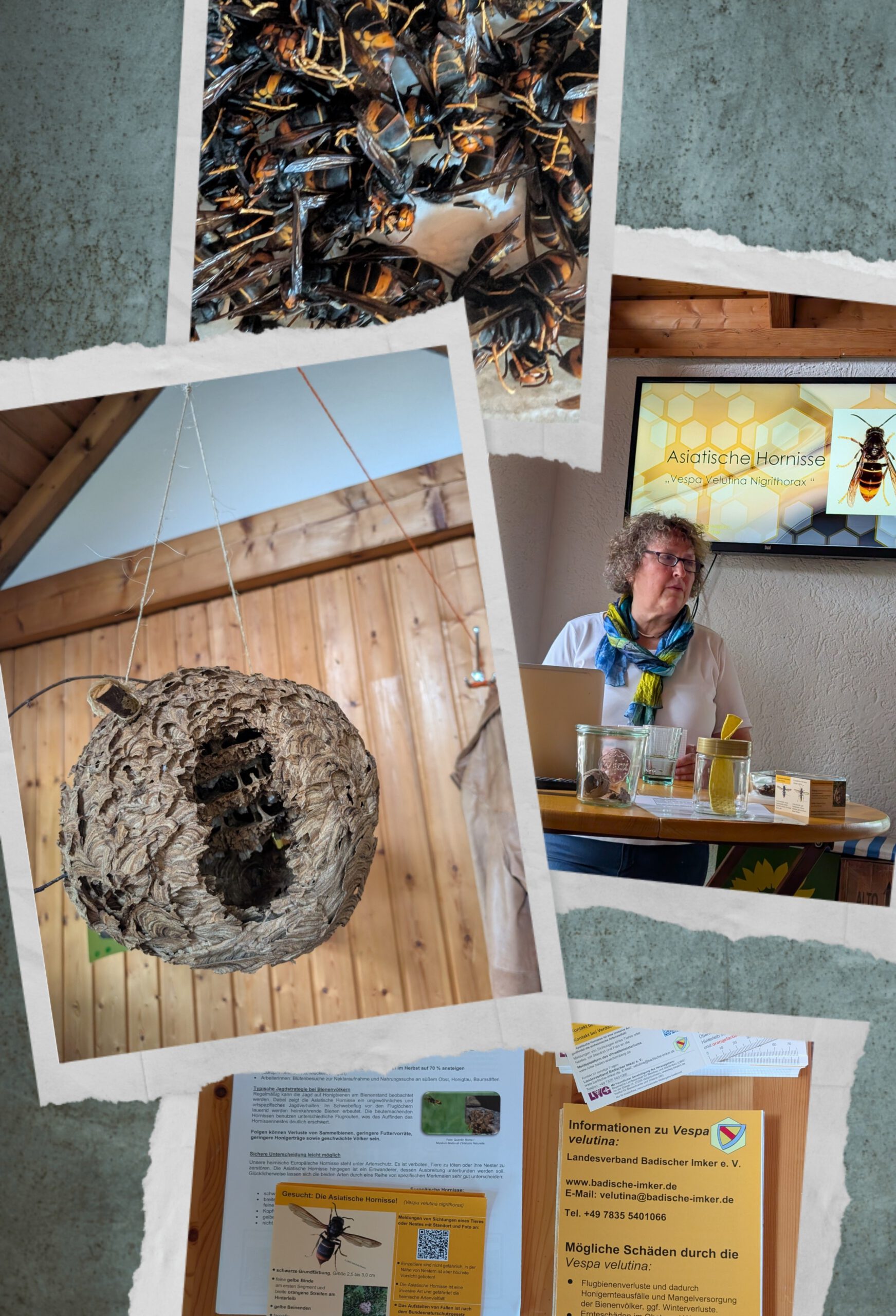 Am letzten Donnerstag hatten wir zu einer Informationsveranstaltung zur Asiatischen Hornisse in unser Grünes Büro eingeladen. Unser Gast, Andrea Häußler-Wellenreuther, 2. Vorsitzende des Imkervereins Philippsburg hat sich in den letzten Jahren intensiv mit der invasiven Art beschäftigt. Ehrenamtlich spürt sie Nester in Waghäusel und Umgebung auf und sorgt für eine fachgerechte Entfernung. Dabei geht es darum, die Primärnester mit den Königinnen zu finden und zu vernichten, bevor ein Sekundärnest gebildet werden kann.